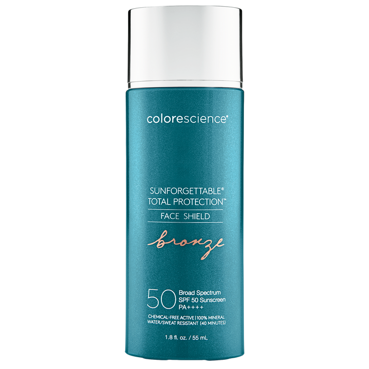Get the radiant, sun-kissed glow you love—without the sun damage. Colorescience Sunforgettable® Total Protection™ Face Shield Bronze SPF 50 is a 100% mineral sunscreen designed to provide broad-spectrum protection while delivering a warm bronze tint that enhances your complexion. Powered by proprietary EnviroScreen® Technology, this hydrating formula defends against UVA/UVB, pollution, blue light, and infrared radiation. The rich, creamy texture blends effortlessly into the skin, making it ideal for use on its own or layered with other skincare and cosmetic products. Suitable for all skin types and tones, this dermatologist-tested sunscreen is non-comedogenic, hypoallergenic, and free of oil, parabens, sulfates, and fragrance. Whether you're looking to even skin tone, boost luminosity, or protect against daily environmental aggressors, this multitasking sunscreen does it all—with style.