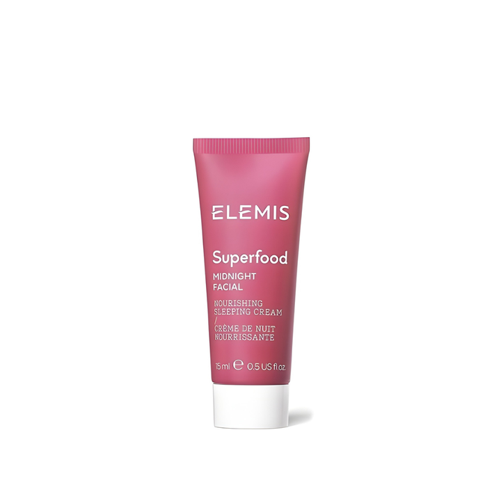 ELEMIS Superfood Midnight Facial is an indulgent overnight cream that replenishes and revives the skin while you sleep. Specially formulated with nutrient-rich Superfoods, it drenches dull, tired complexions in lasting hydration and nourishment. Camu Camu, a natural source of Vitamin C, helps brighten and energize, while Cocoa Butter, rich in Omega 6 and 9 fatty acids, provides intense moisturization. Banana Flower Extract delivers prebiotic benefits to support skin balance, leaving the complexion smooth, replenished, and glowing by morning. Its lightweight yet decadent texture makes it suitable for nightly use, offering skin the perfect reset while minimizing visible signs of fatigue.