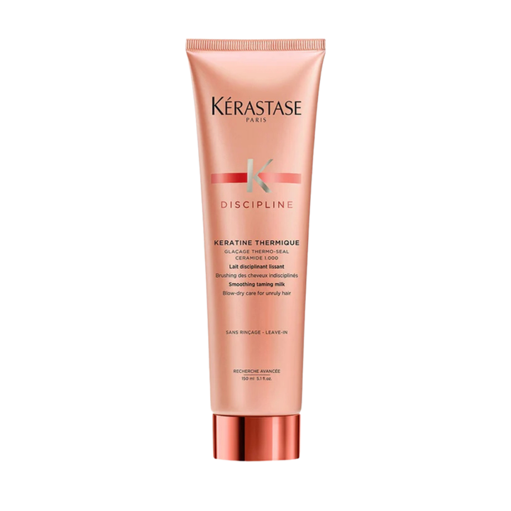 Kerastase Keratine Thermique Smoothing Taming Milk is a blow-dry care essential designed to control frizz, protect from heat damage, and smooth hair for a polished finish. This lightweight milk tames unruly hair, reduces breakage, and provides humidity protection while ensuring a sleek, long-lasting style. With 450°F heat protection, it safeguards hair from styling tools, leaving it soft, shiny, and manageable.