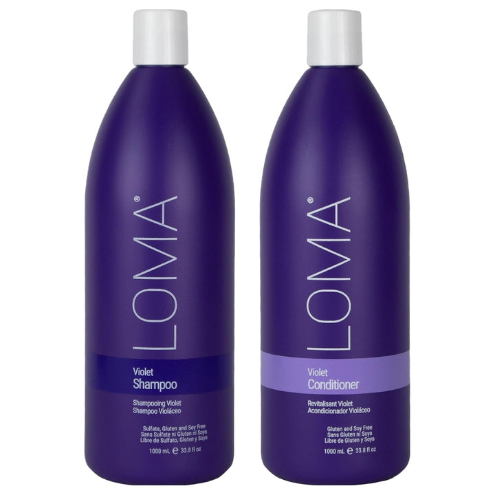 Loma Violet Shampoo & Conditioner Duo Set by Loma is specially formulated to neutralize unwanted yellow and brassy tones in blonde, silver, and highlighted hair. The violet shampoo gently cleanses while depositing cool pigments to keep lightened shades bright, clean, and radiant. The conditioner enhances manageability and softness while maintaining a balanced tone and silky finish. Infused with natural botanicals like aloe vera and pure pigments, this duo helps preserve color clarity, restore hydration, and boost shine. The result is luminous, cool-toned hair that looks fresh and vibrant after every use.